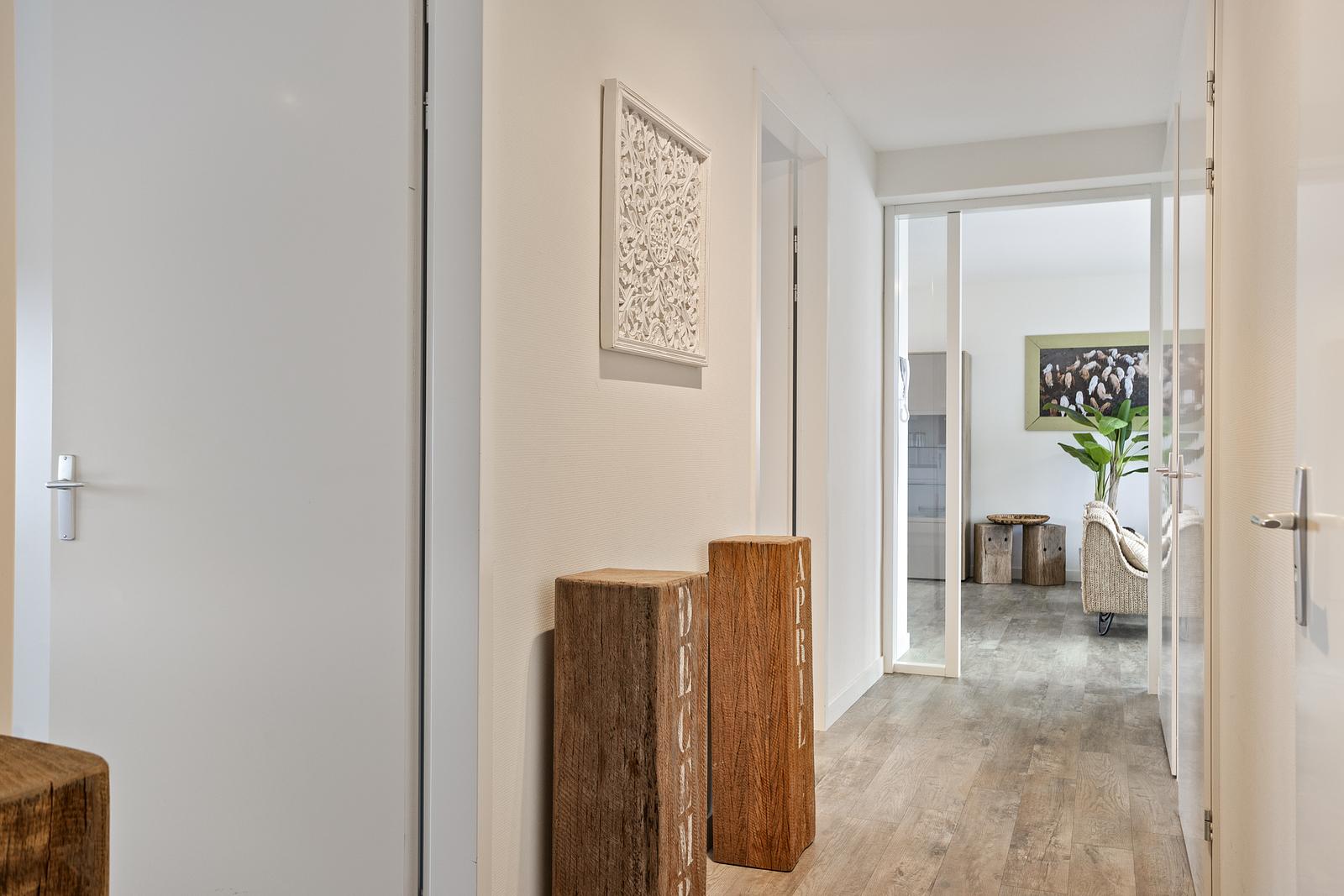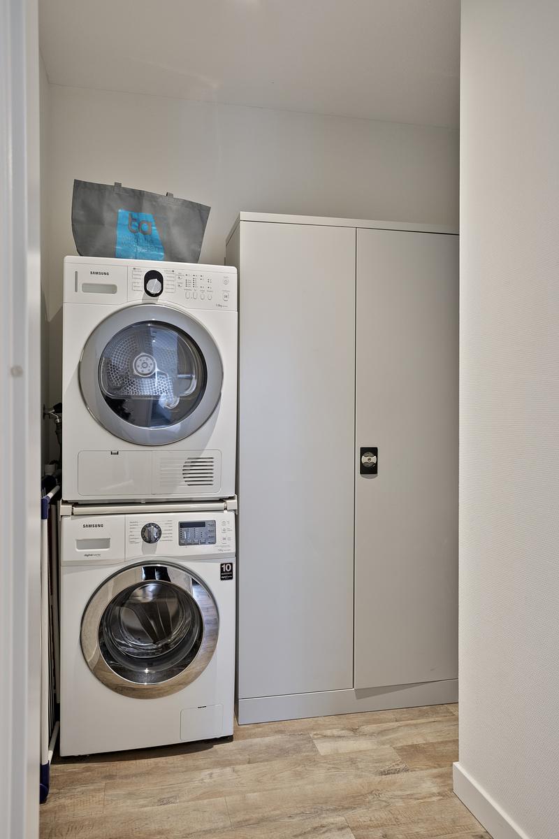 3e verdieping: entree, garderoberuimte, 2 ruime slaapkamers, badkamer met inloopdouche en wastafel. Apart toilet. Bergruimte met wasmachine en droger.